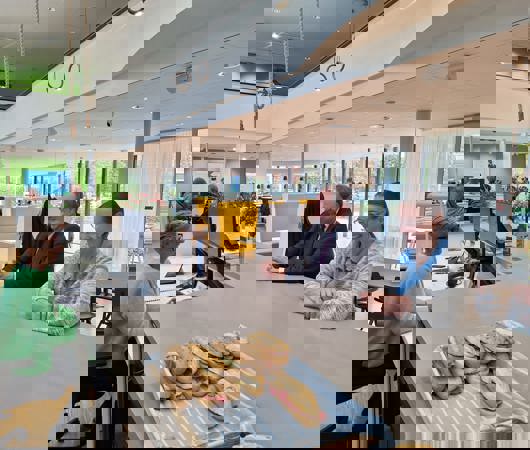 Ook de aanwezigheid van bibliotheek Rijn & Venen en De Driemaster in het gebouw maakte indruk. “De School ademt dynamiek,” aldus een van de gasten. “Het is een plek waar mensen elkaar ontmoeten, waar kennis wordt gedeeld en waar ruimte is om te groeien.”